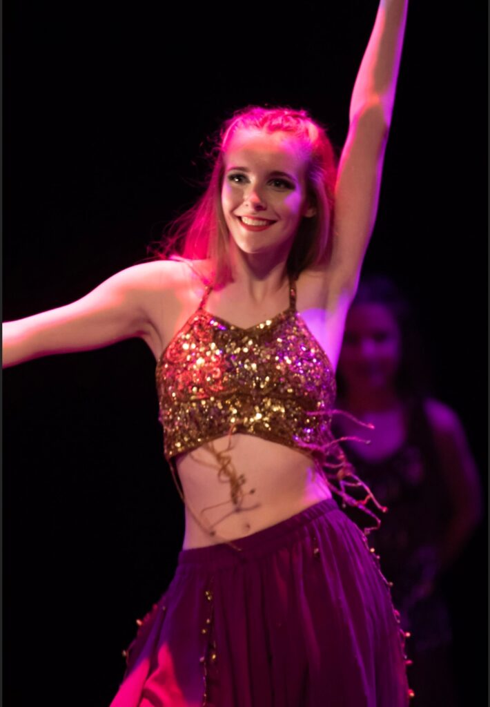 J’ai eu la chance de diversifier les styles de danses. J’ai commencé à 10 ans par du Moderne Jazz. Puis, de mes 12 ans à mes 15 ans j’ai fait du Hip-Hop. À 13 ans, et pendant 3 ans, je dansais la Salsa, seule et en couple. Cette même année, j’ai commencé le Street Jazz, que je n’ai jamais arrêté depuis. Finalement, cela fait 5 ans que j’ai commencé la danse orientale. Aujourd’hui, je suis retournée dans le cours de Moderne Jazz et de contemporain.
